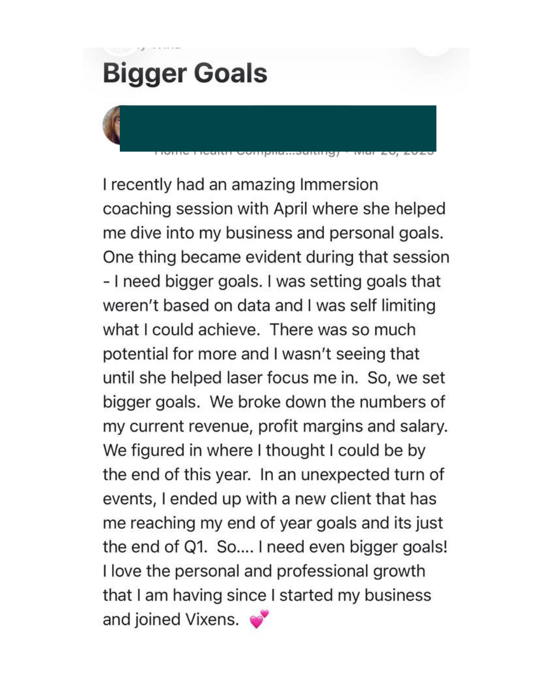 “I set unapologetically big goals and hit 75% of last year’s total revenue in one quarter.”